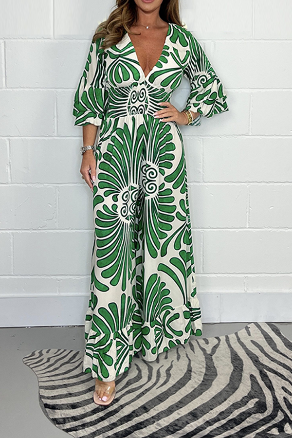 We're glad you've clicked on our Bold Printed V Neck Jumpsuit as we're really into its casual vibes! The Dress cut make this a great choice for any stylish girl.
